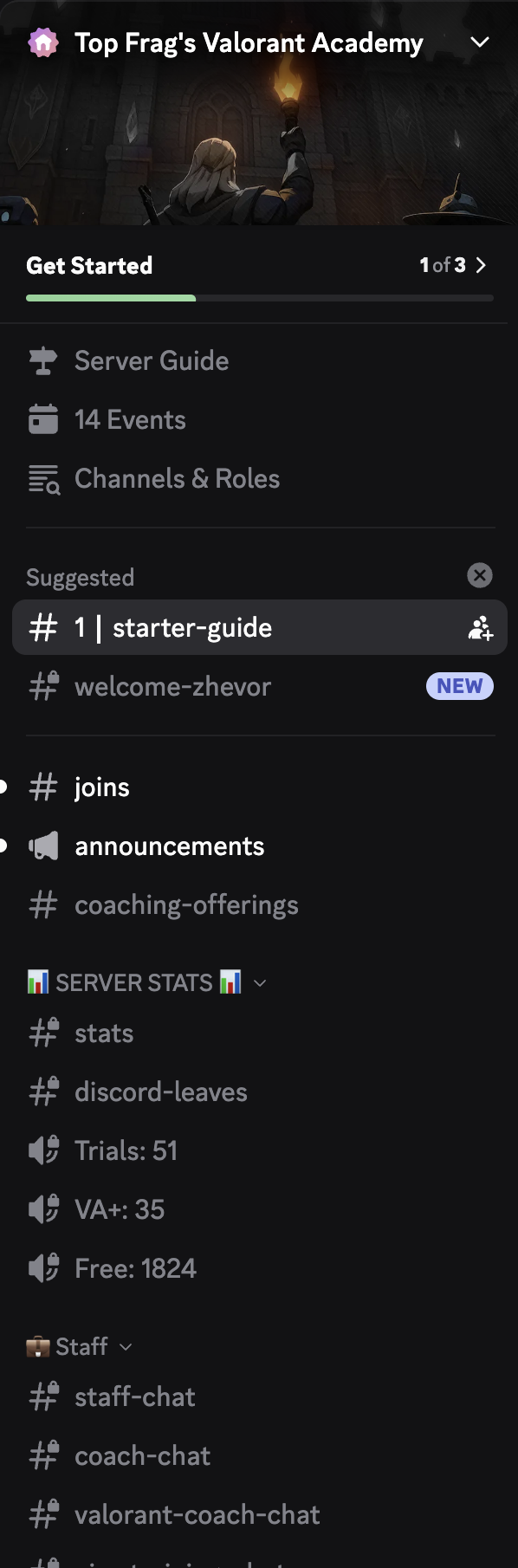 Join Live Calls: Cover Valorant strategy, aim mechanics, and performance coaching - no sign-up required, just join #coach’s-corner when the call starts (or any time in between).